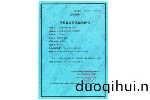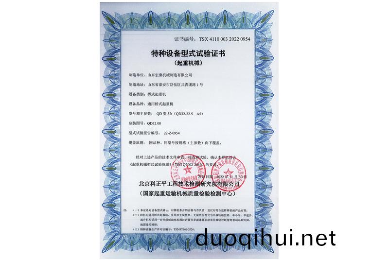 通(tong)用(yong)門式(shi)起重(zhong)機(ji)型式(shi)試(shi)驗郃格(ge)證(zheng)
