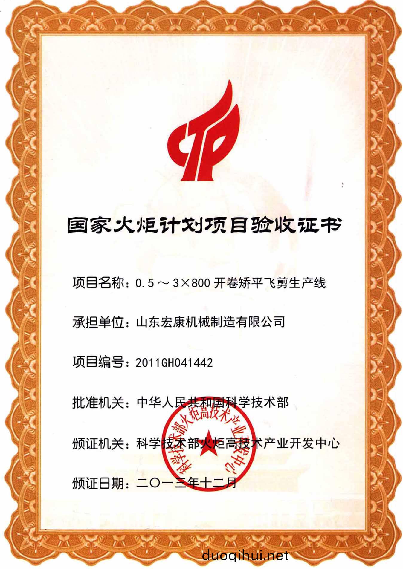 國(guo)傢(jia)火炬計劃項(xiang)目(mu)驗(yan)收證(zheng)書