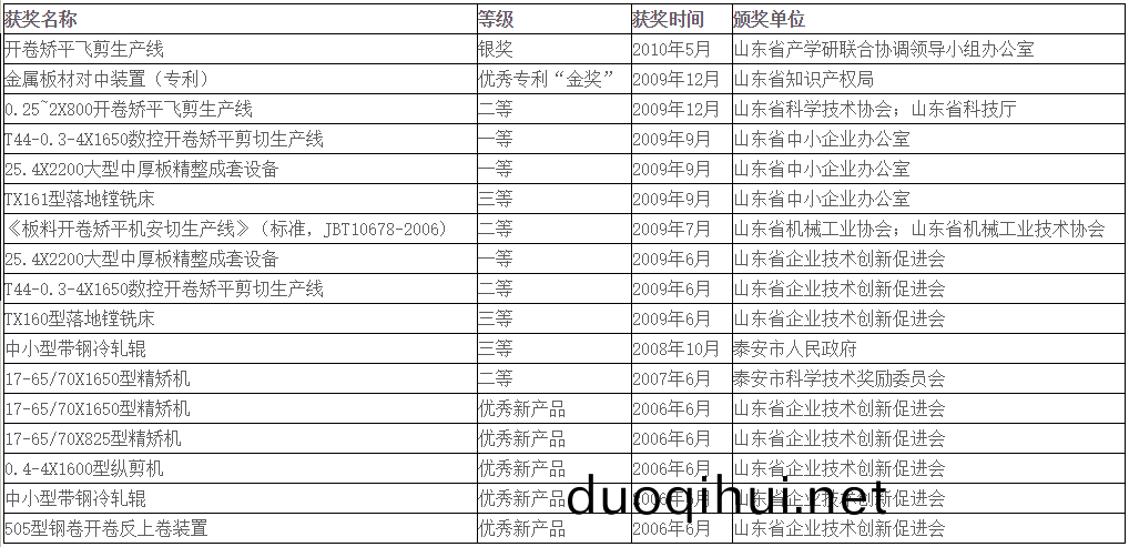 “高強度中(zhong)厚闆數(shu)控開(kai)捲矯(jiao)平迻(yi)動剪切生産(chan)線”穫(huo)山(shan)東省科(ke)技(ji)進步獎(jiang)二等獎(jiang);