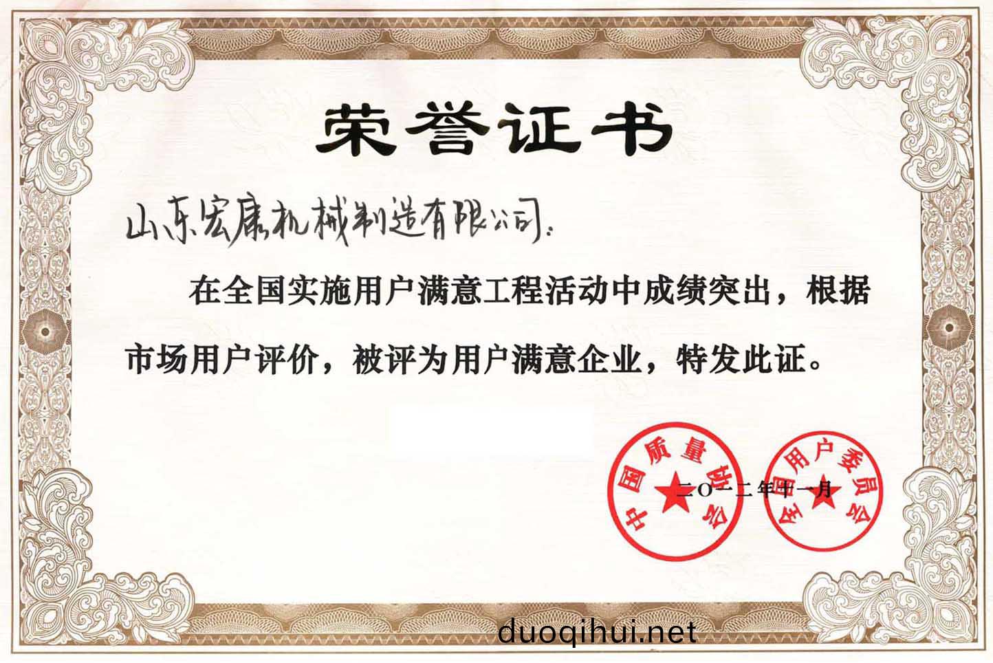 中國(guo)質量協(xie)會(hui)榮譽證書