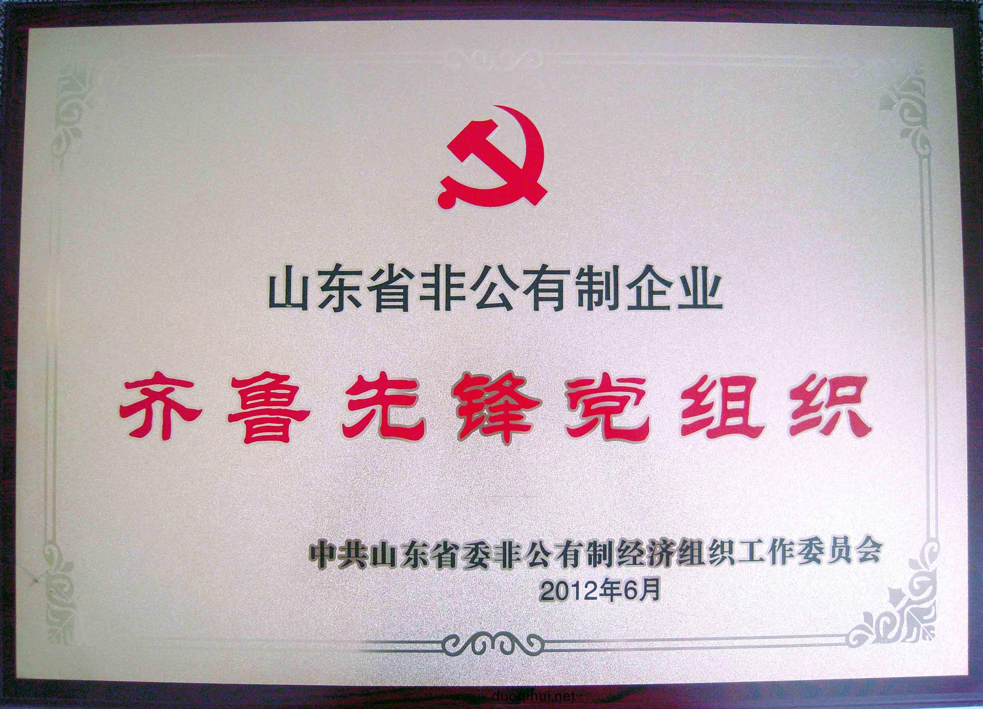 2012年(nian)6月(yue),中(zhong)共(gong)山東宏康(kang)機械(xie)製(zhi)造(zao)有(you)限(xian)公(gong)司(si)黨(dang)總(zong)支委員會被(bei)中(zhong)共(gong)山東省委非(fei)公(gong)有製(zhi)經濟組織(zhi)工作(zuo)委(wei)員(yuan)會授予“山(shan)東省非公有製企業齊魯先(xian)鋒(feng)黨(dang)組織(zhi)”榮(rong)譽稱(cheng)號。